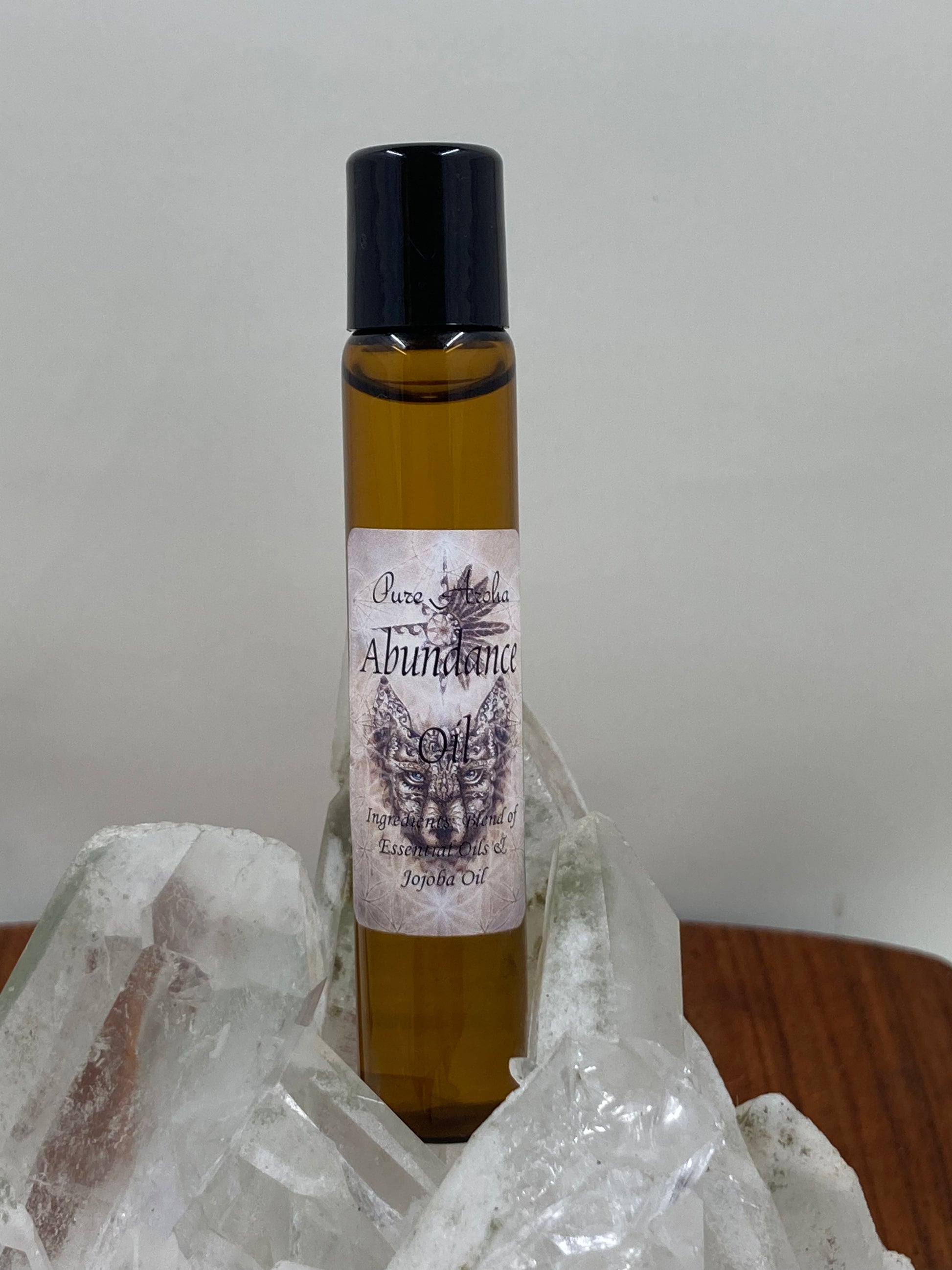 Abundance Oilđź–¤Perfumeđź–¤10ml đź–¤RollerCrystal within is Citrineđź–¤This beautiful blend of essential oils in jojoba, is a blend of abundance oils in the essential oil world. You can use this for candle magic, anointing your candles, wear as a perfume or is on pulse points to attract abundance. pop into you bag or have at home, as part of your feel good arsenal. Earthy, spicy smell.
