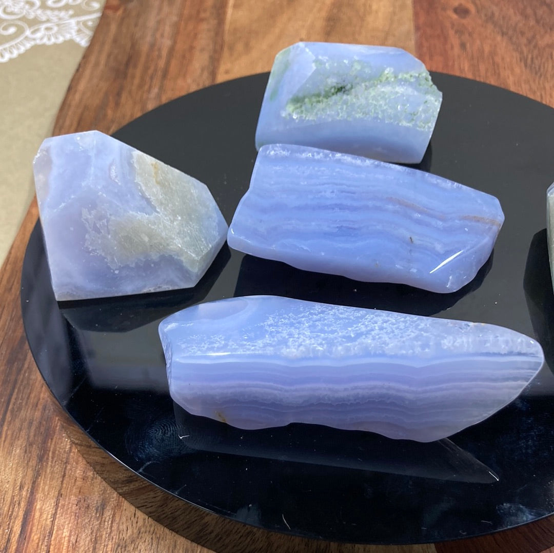 Blue lace agate is said to be a stone of communication, making it easier for people to become confident and articulate. For this reason, it's considered a good idea to wear jewellery with blue lace agate or carry a stone in your pocket when required to speak in public.
