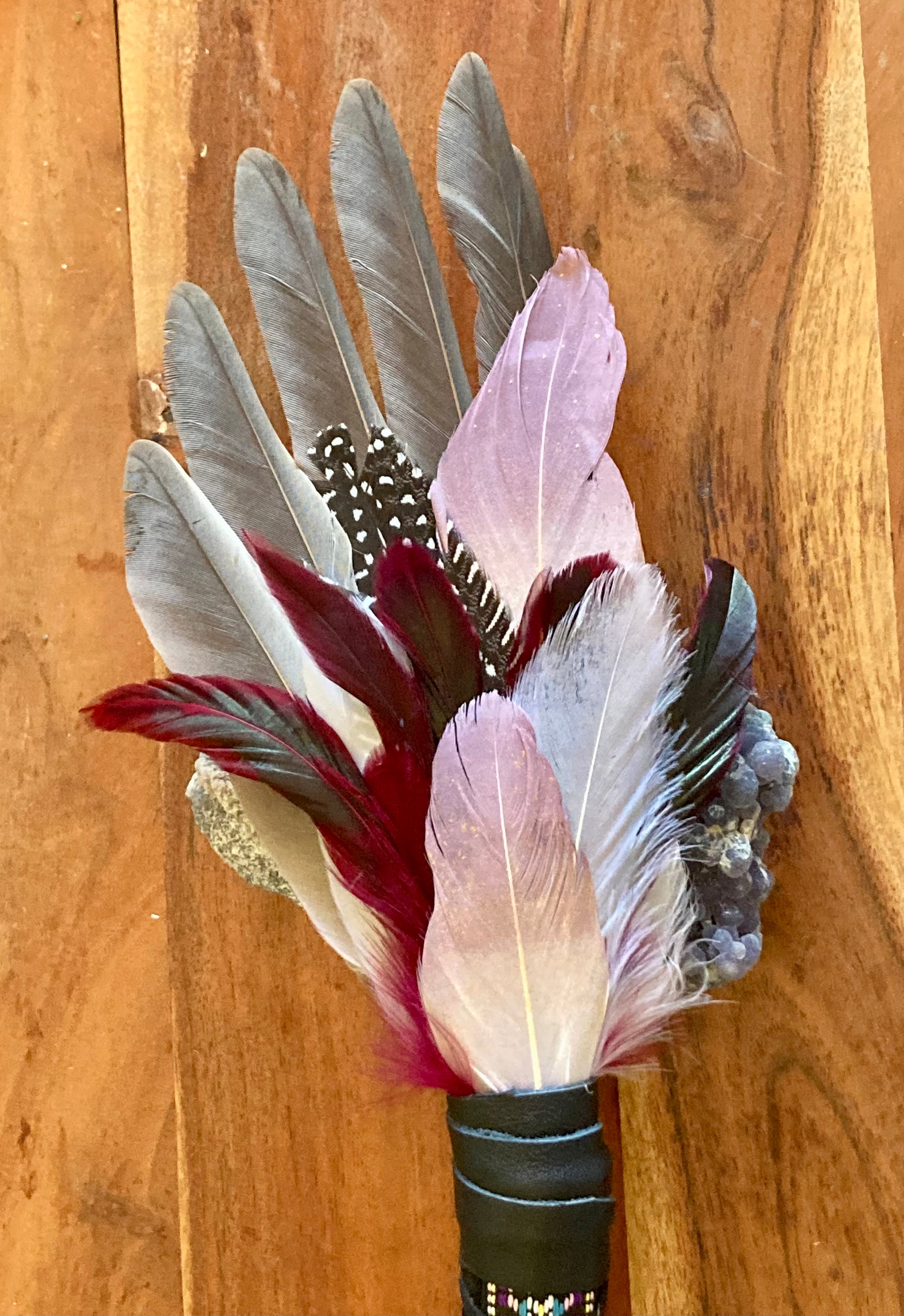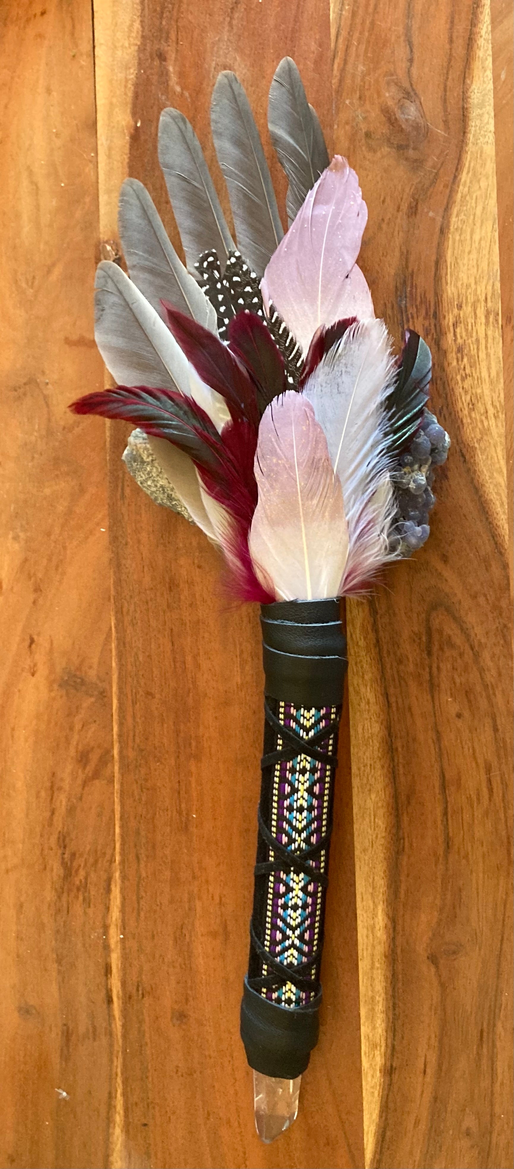 Galah ✨Smudging Fan✨Shamanic Tool✨Clear Quartz Point✨Galah 1✨With Guinea Fowl, Goose & Rooster✨Ethically Sourced ✨