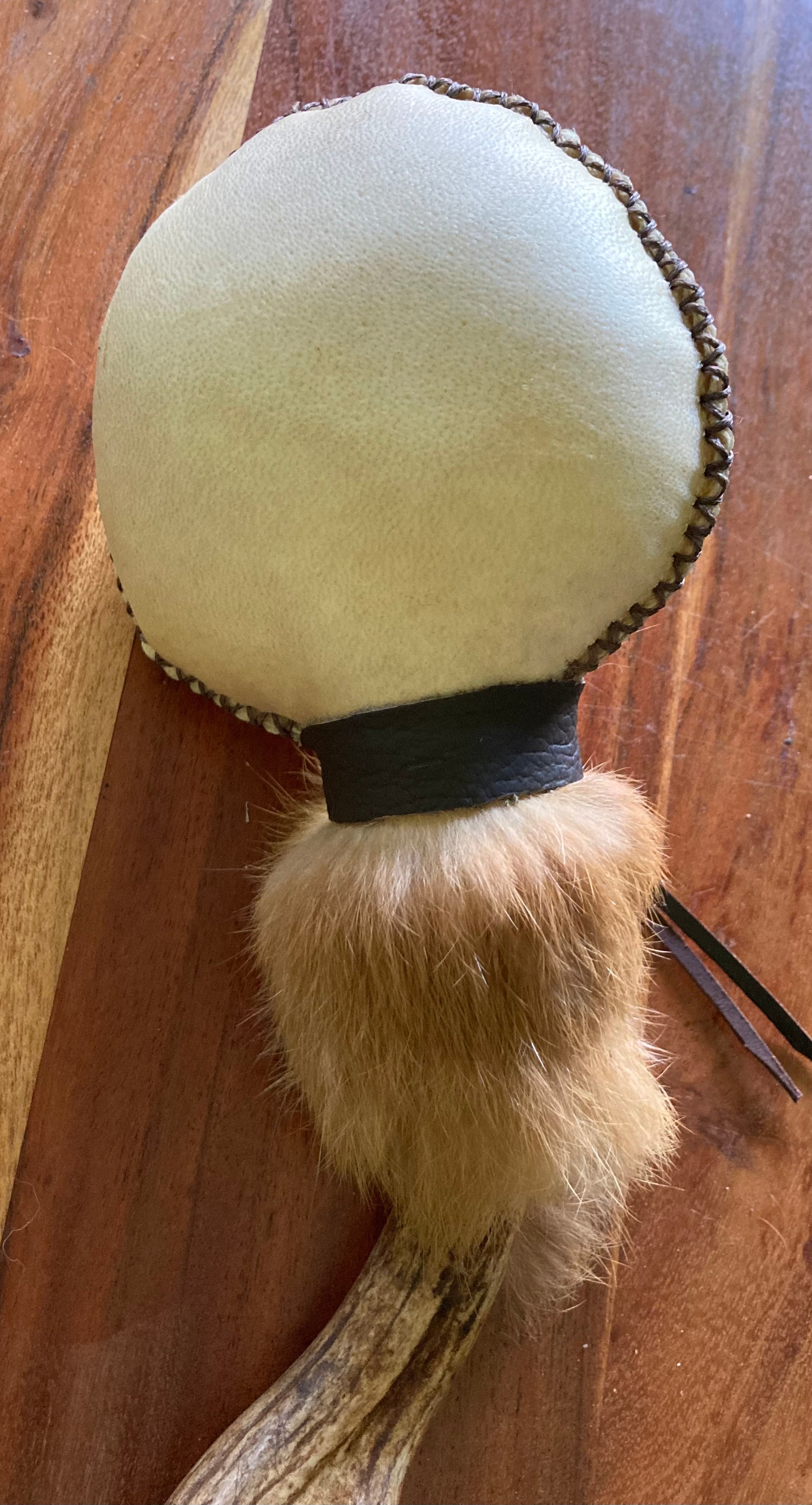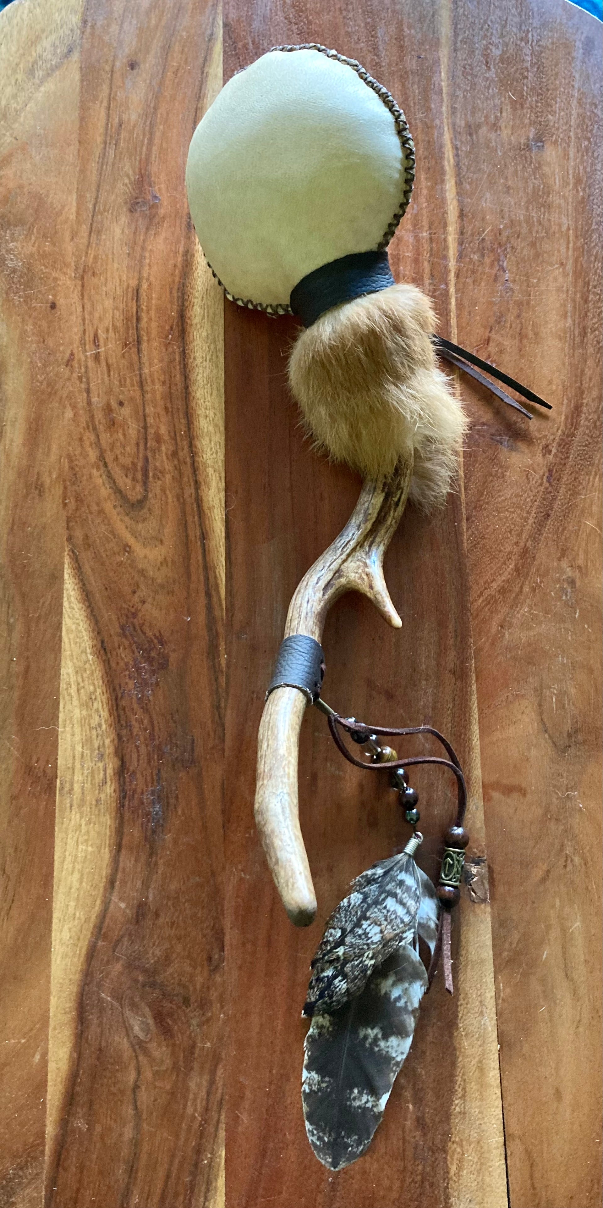 Medicine Rattle with Fox, Deer and Tawny