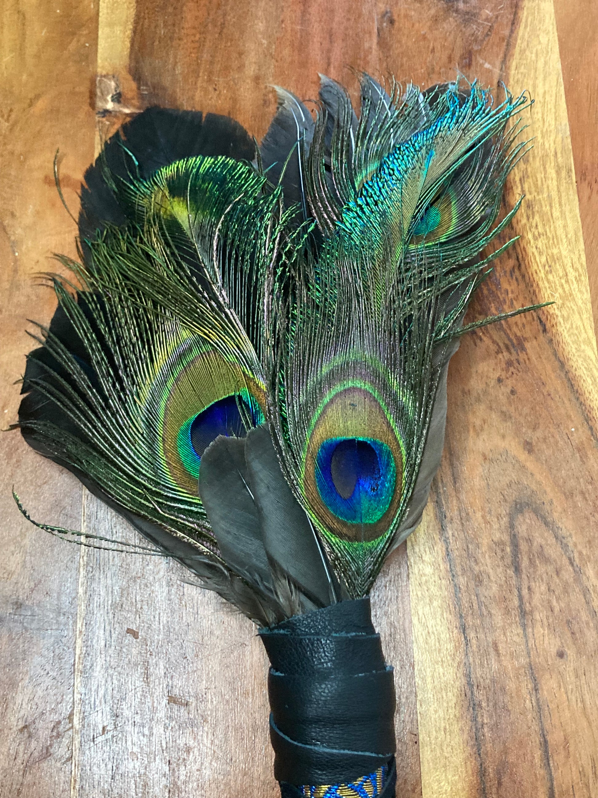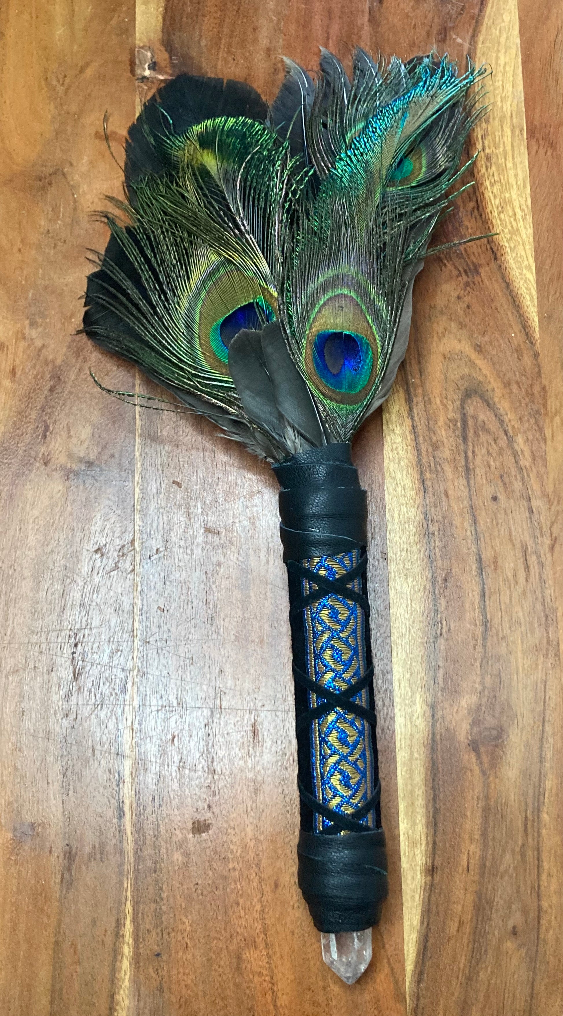 Peacock✨Peacock Smudging Fan✨Smudging Fan✨With Duck, Brush Turkey & Crow✨Clear Quartz Point✨