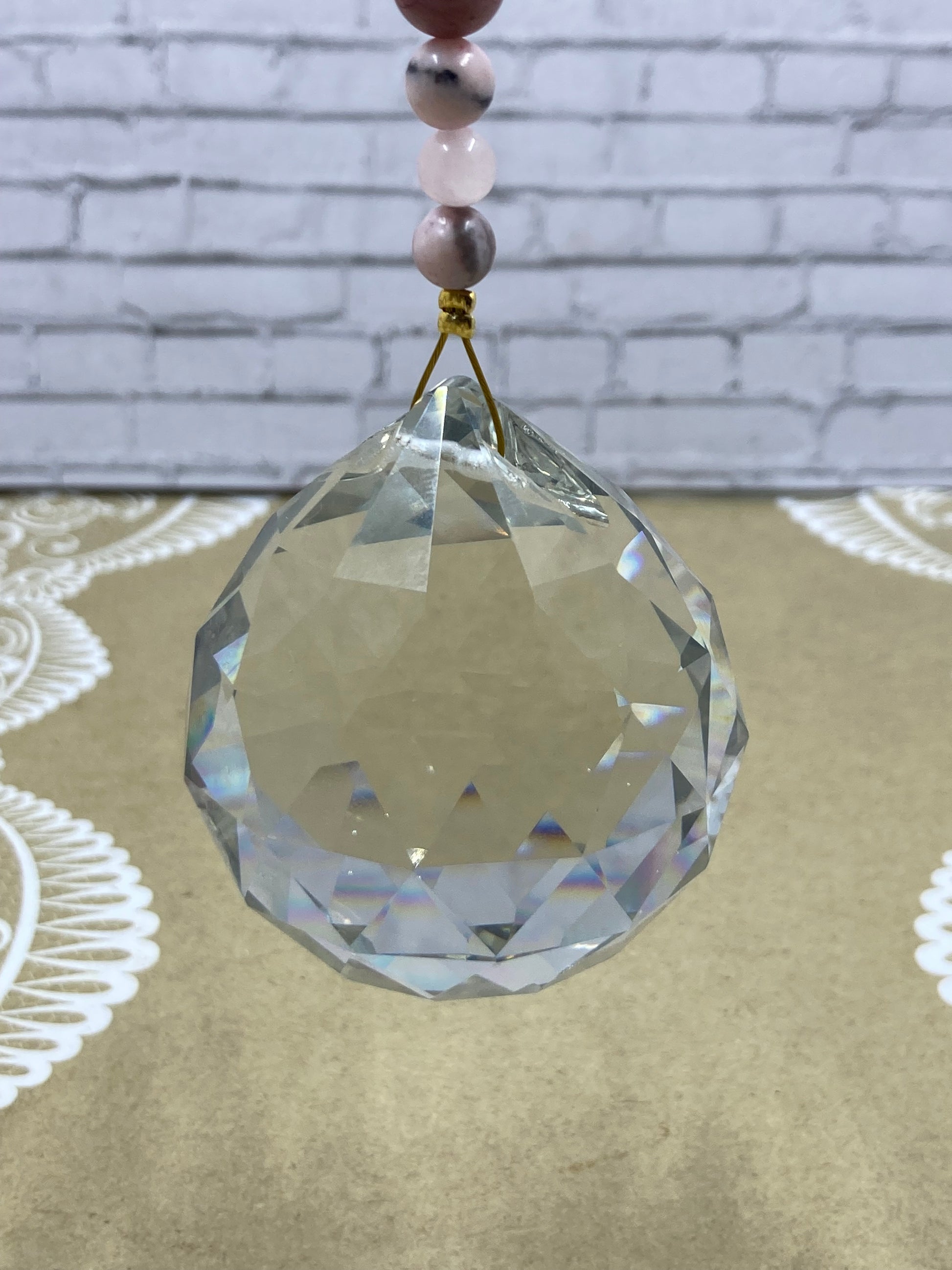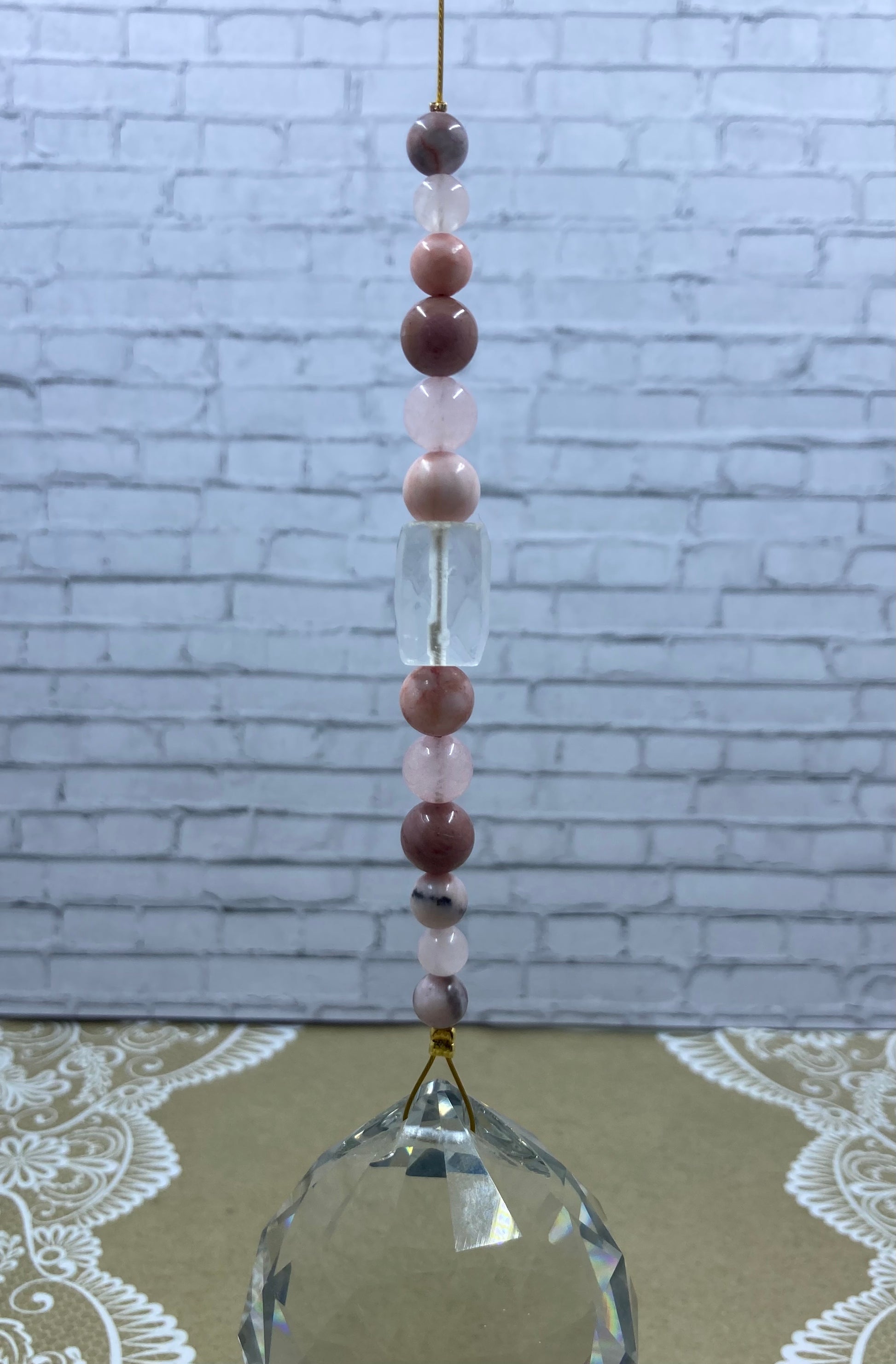 Suncatcher✨Prism✨dia 5cm✨Beading- Pink Zebra Jasper, Rose Quartz, Rhodonite & Clear Quartz ✨