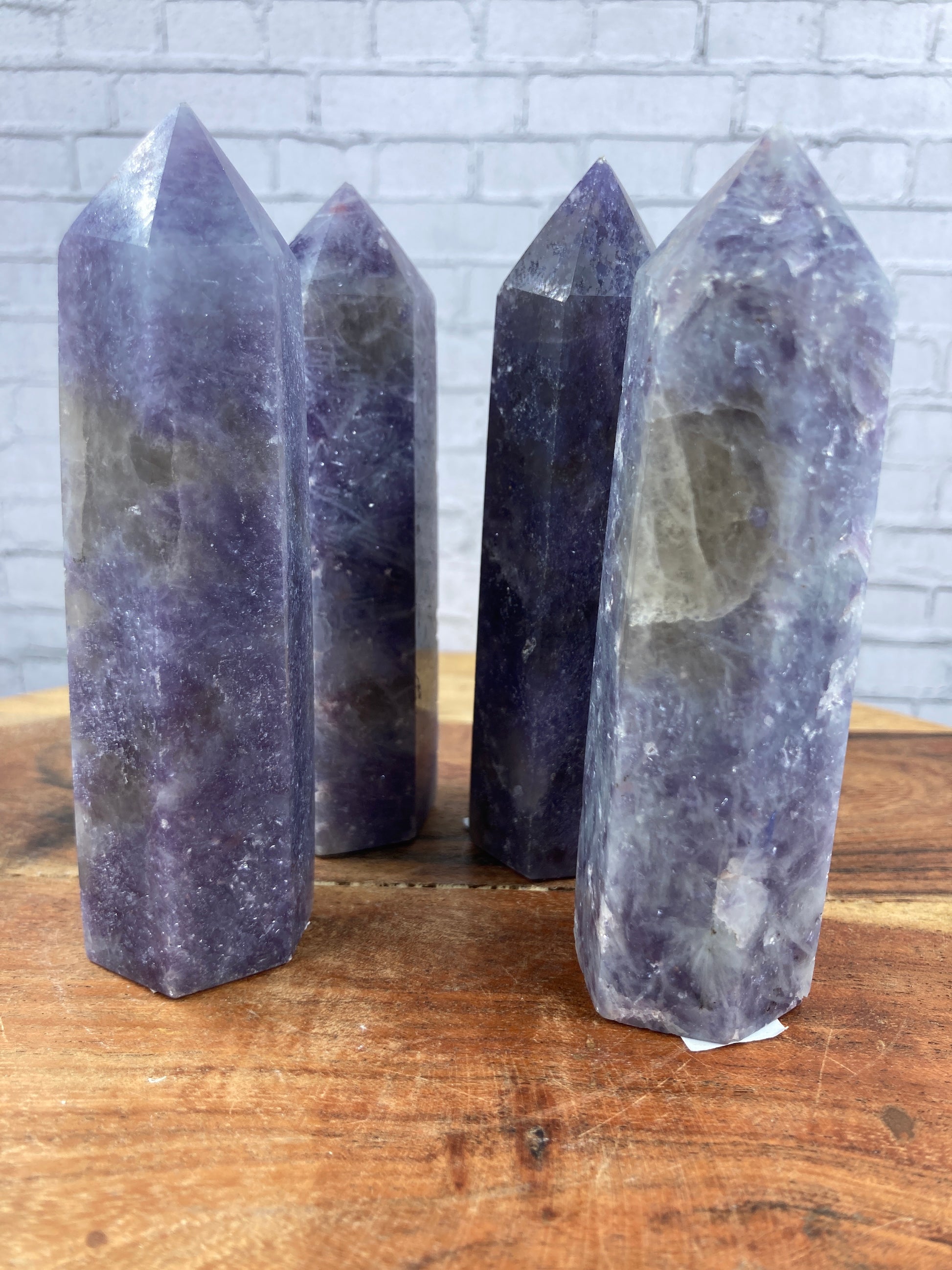 Is a stone that comprises of Lepidolite, Smokey Quartz, Pink Tourmaline and Clevelandite.