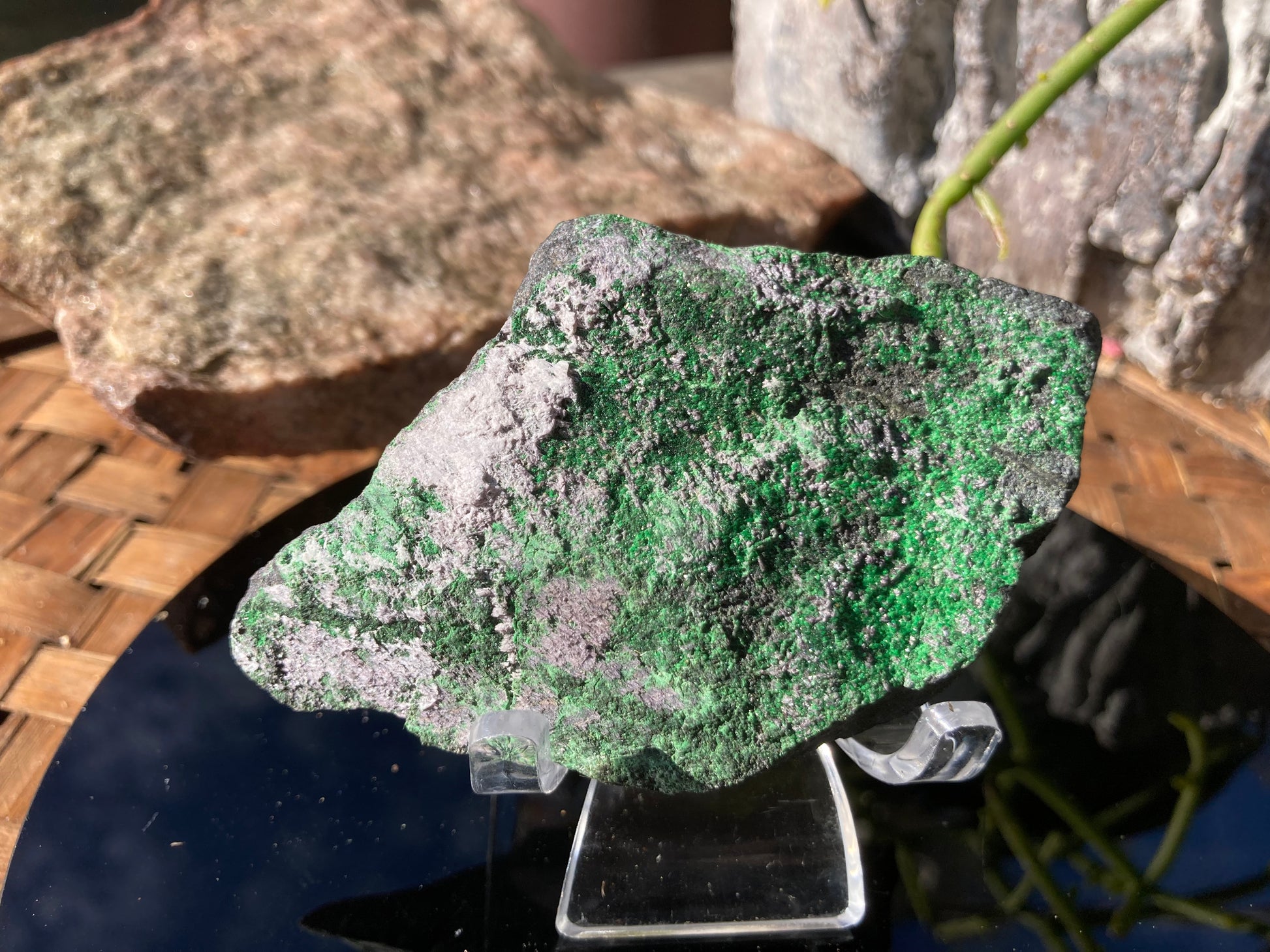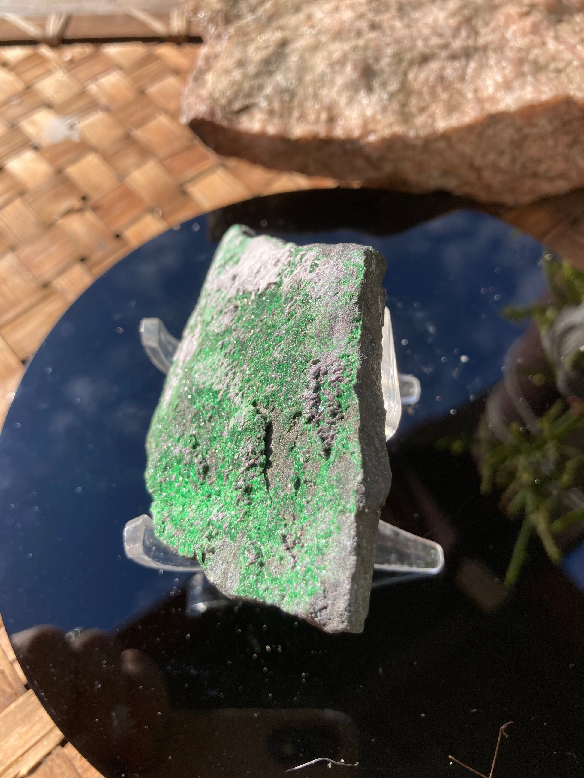 Uvarovitš¤Garnetš¤length 8.5cmš¤width 5.5cmš¤Russian Uvarovit mined from small family mines, between Ā 1979-1988š¤
