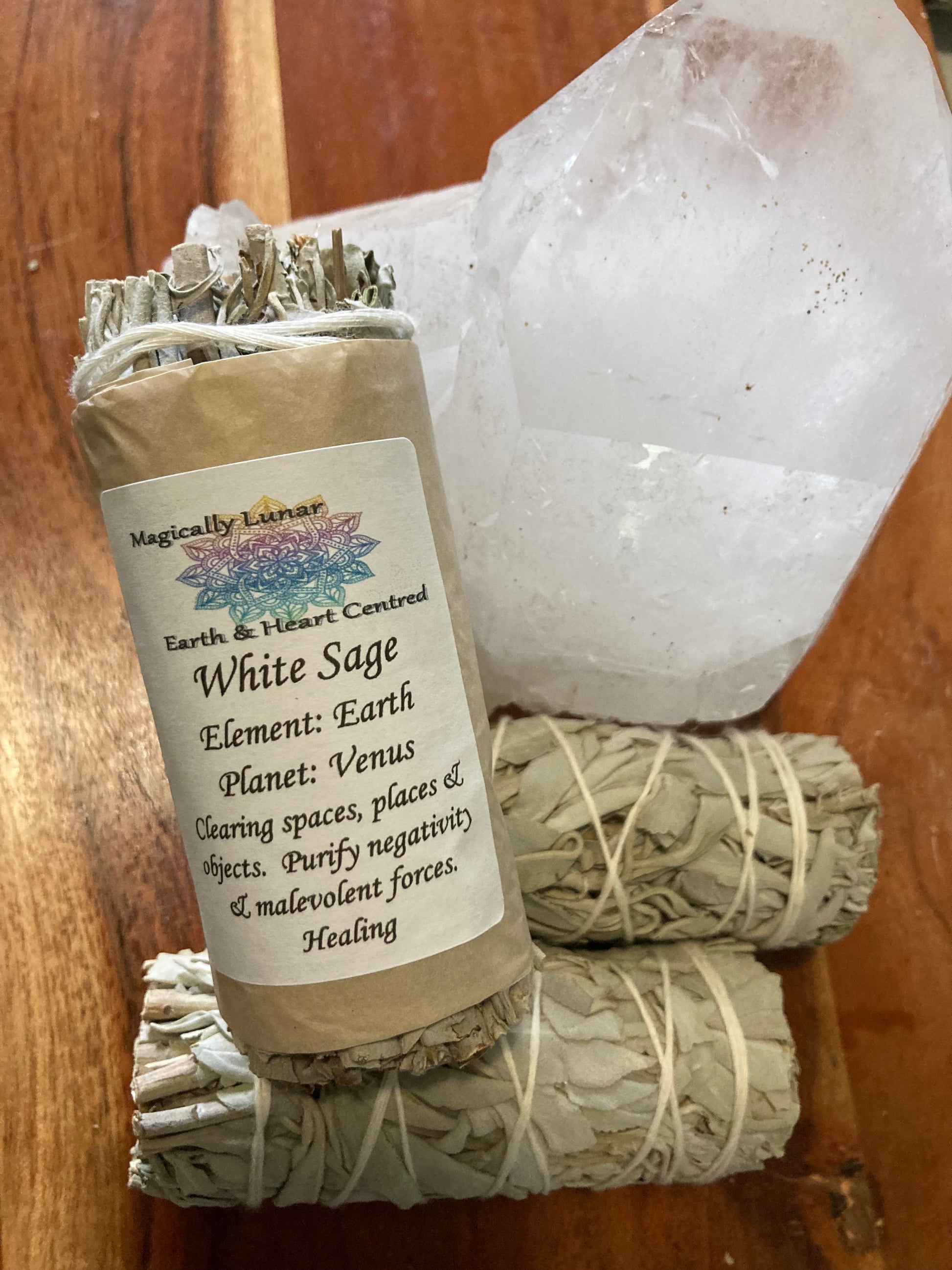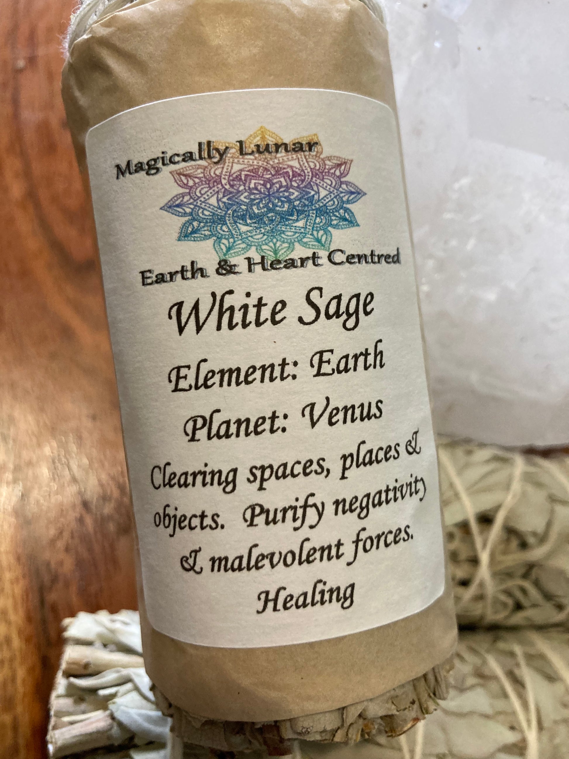 Our White Sage Smudge sticks are ideal for cleansing and purifying your home with herbaceous notes. Sage has traditionally used in ancient spiritual ritual by Sharman, healers and native American tribes. Burning Sage is said to ward off lingering negative energies and to purify spaces. Sage has been used for healing, and for blessing. Sage must always be practiced with respect, intention and connection. Our beautiful Californian White Sage herbs have been sustainably grown without pesticides and hand wrapped in natural cotton.
